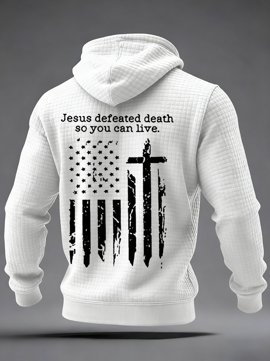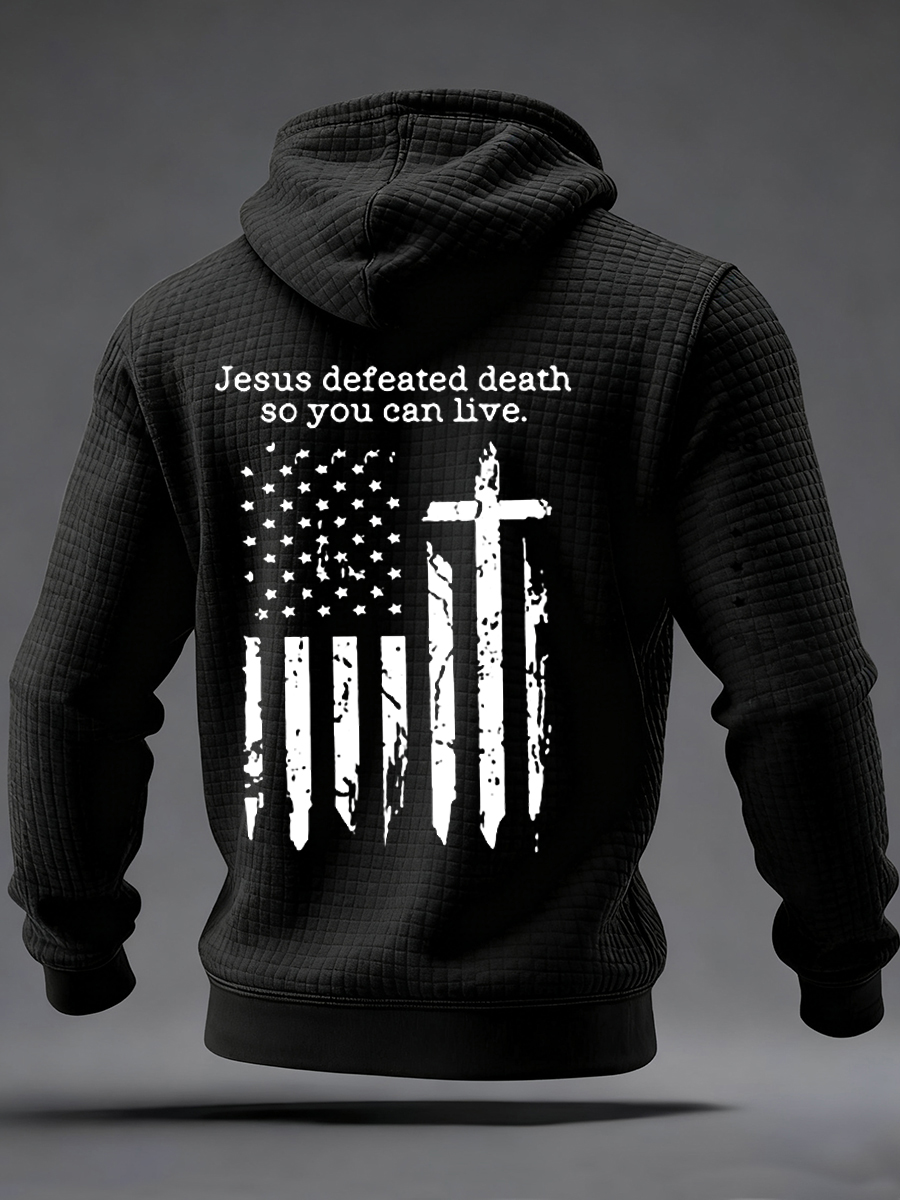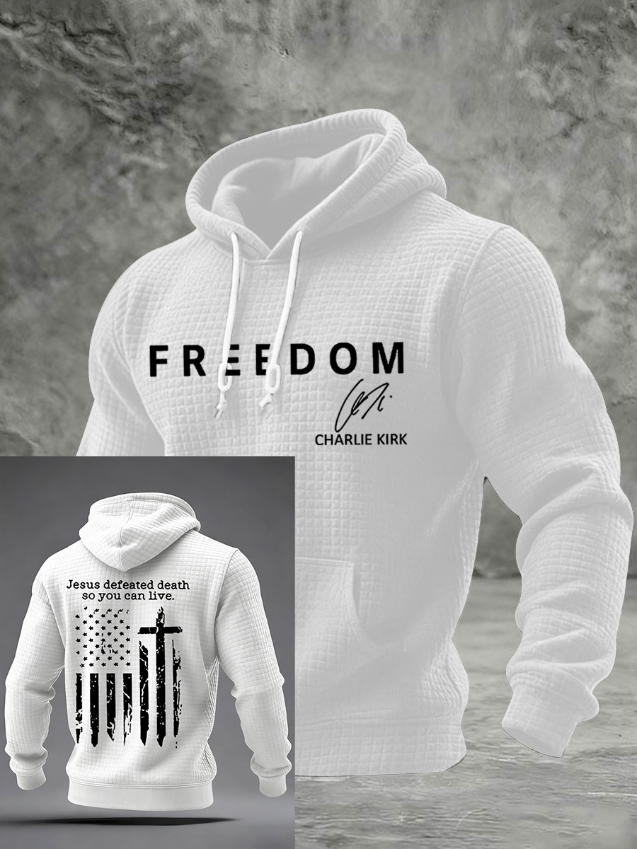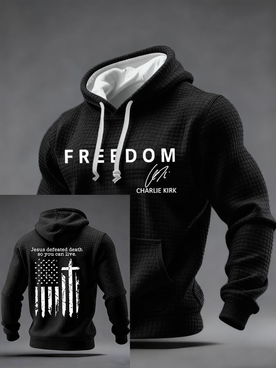 Men's Freedom Flag Print Casual Checkered Hoodie
