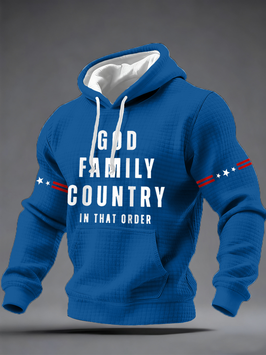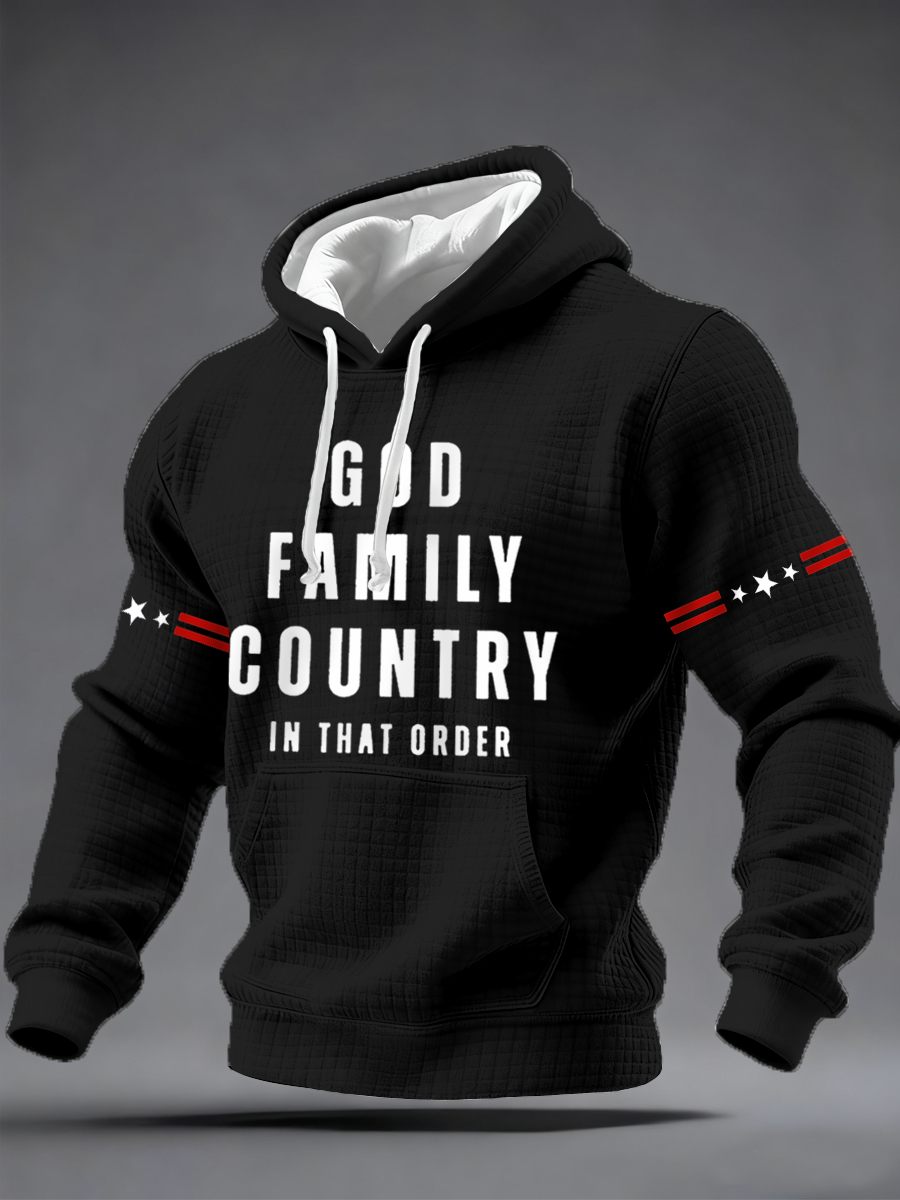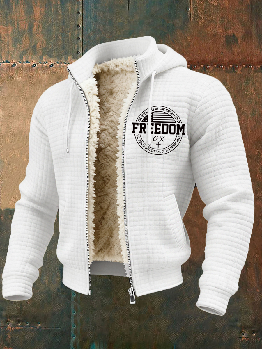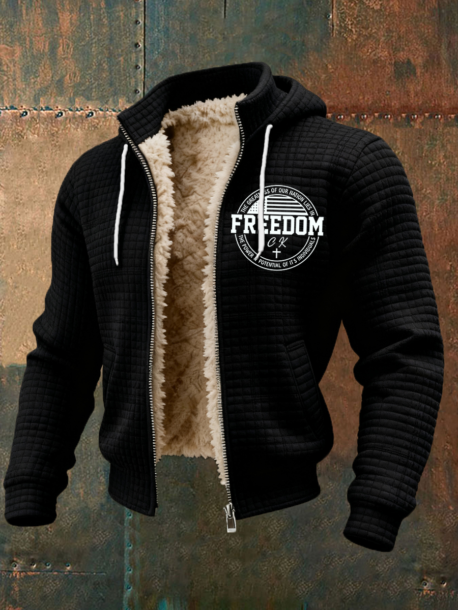 Men's Freedom Flag Print Plush Zipper Hooded Jacket