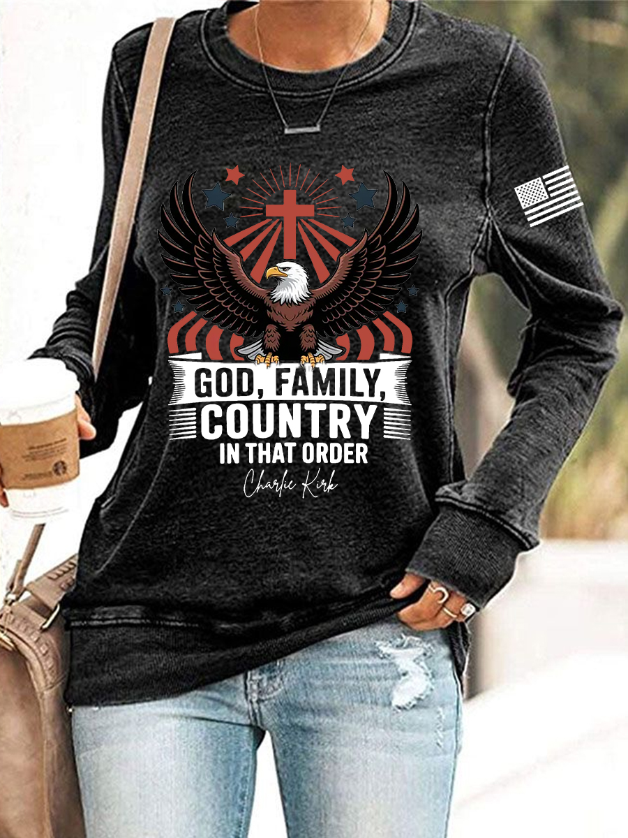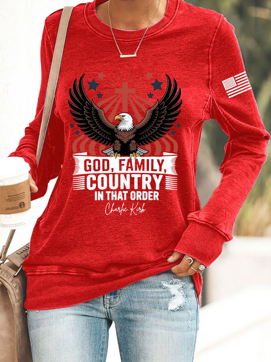 Women's God Family Country In That Order Flag Print Sweatshirt