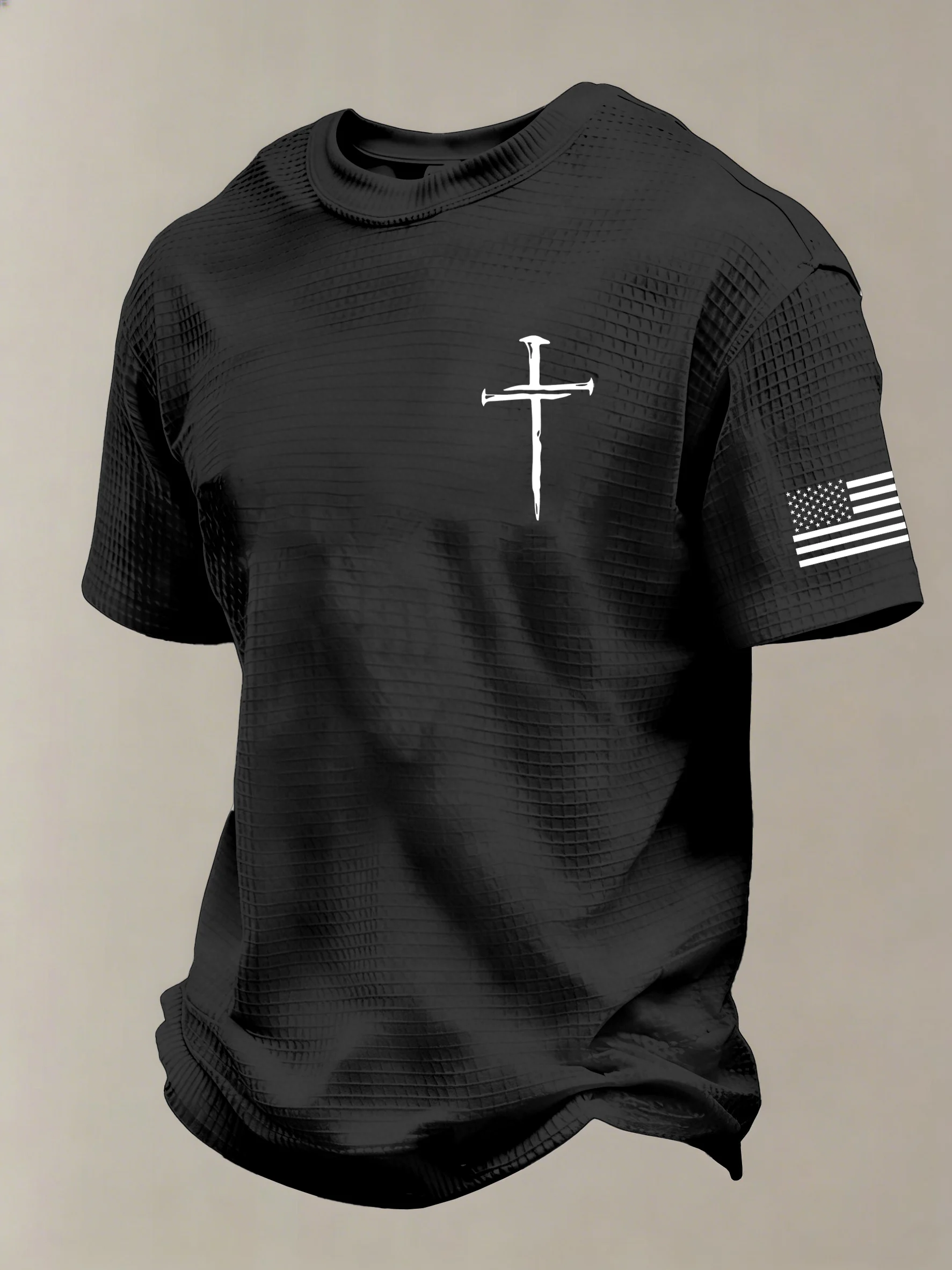 Men's Vintage American Flag Print Waffle T-Shirt-Fast Shipping