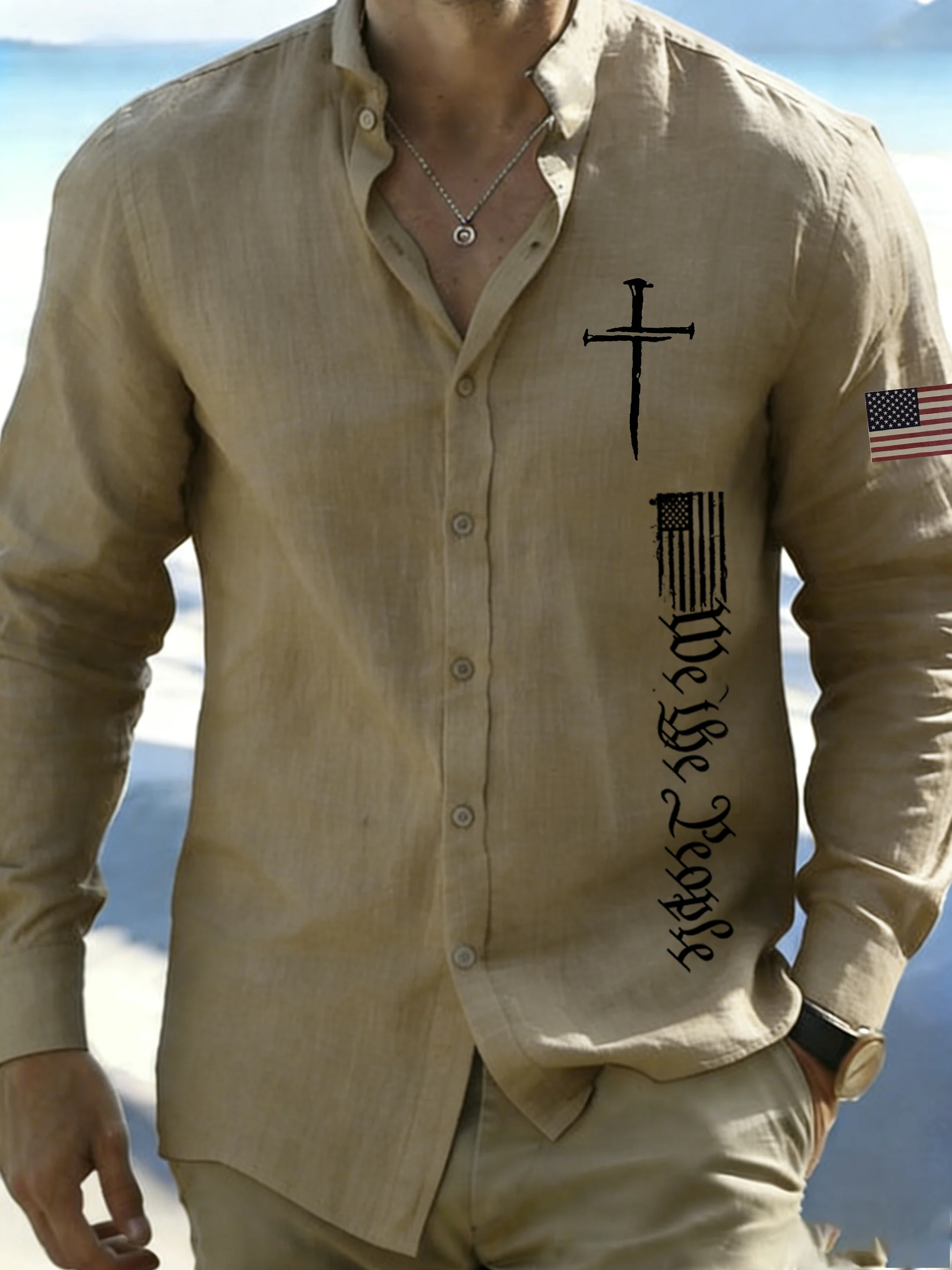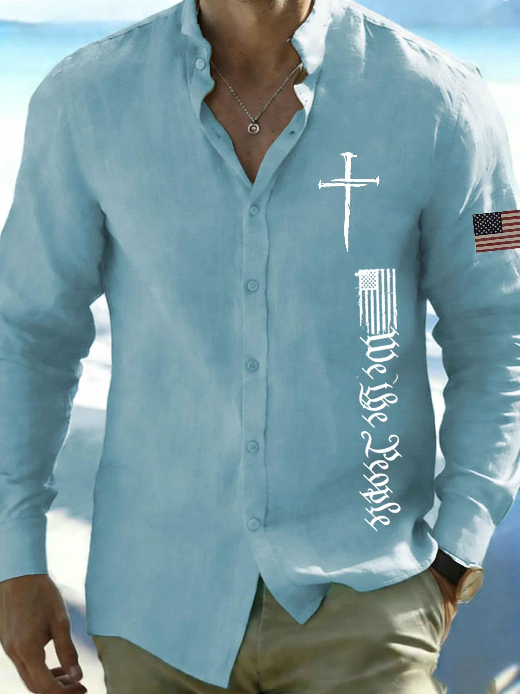 Mens Faith Print Casual Long Sleeve Shirt-Fast Shipping