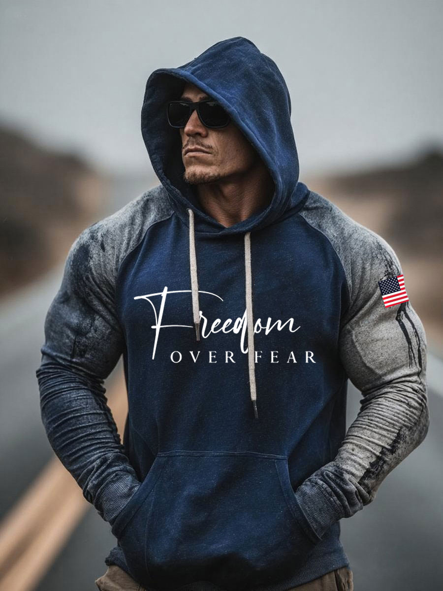 Men's Freedom Over Fear Printed Casual Hoodie