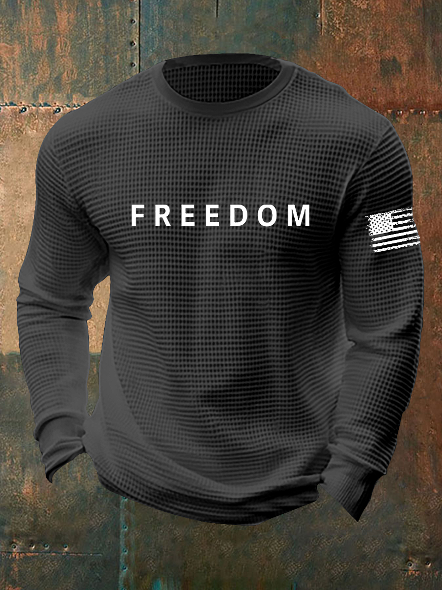 Men's Freedom USA Flag Print Casual Waffle Long Sleeve T-Shirt