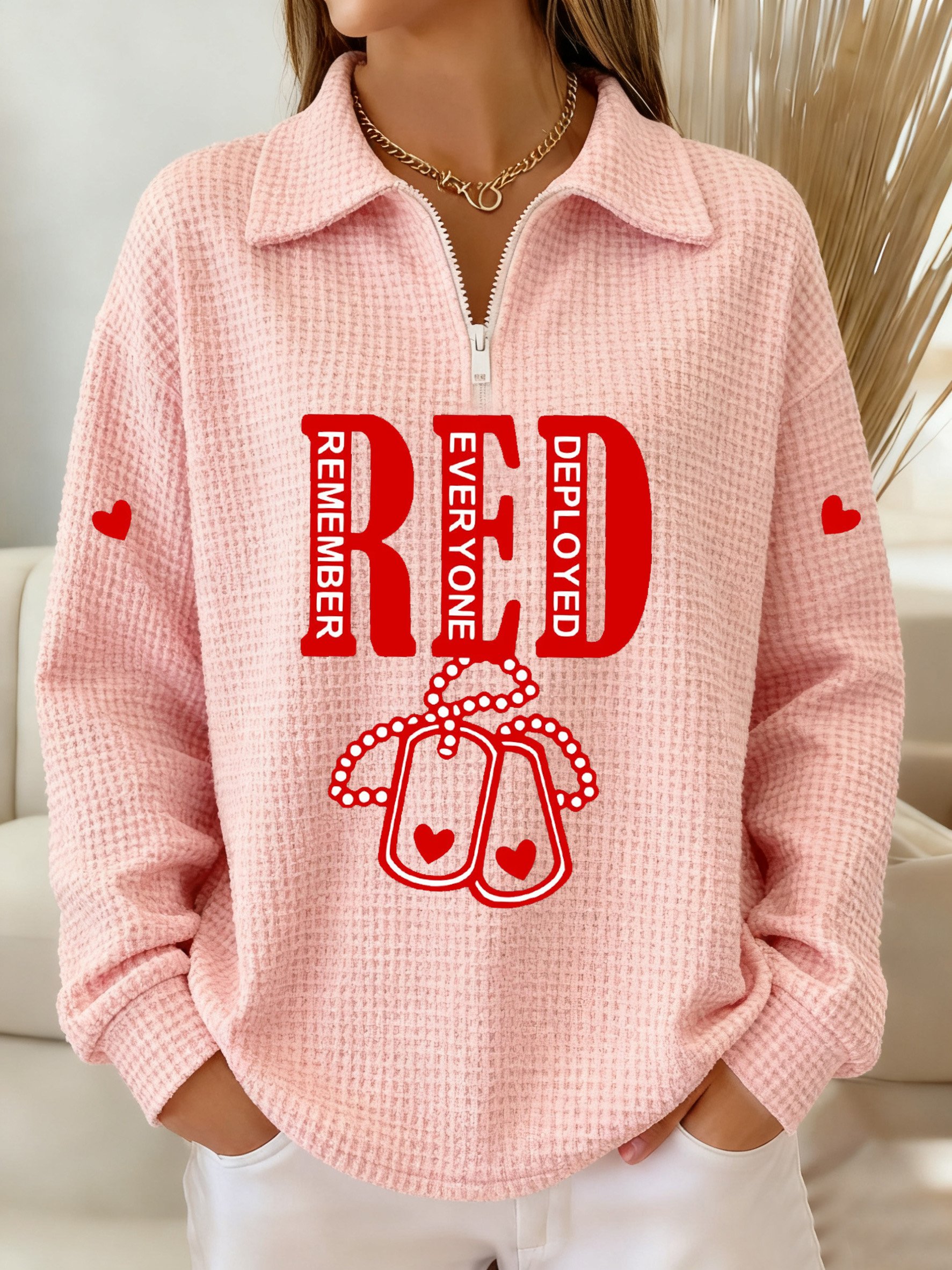Women's Veterans Red Friday Print Round Neck Sweatshirt